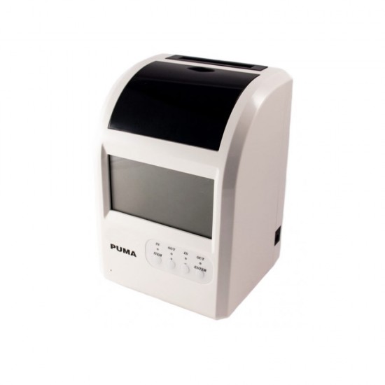 The easy-to-use timekeeping clock, ready to use, without the need for any specialized technical help. Puma is supplied in a KIT with 50 tags and a 5-place plastic casing that can be expanded. The electronic card that is not cluttered, does not require special operations to start, just insert the plug is also indicated for home use as for the control of C.O.L.F. Puma, dominates in performance and price. Large and easy to read LCD display with indication of: hour, minute, month, day of the month, day of the week, status of the stamping (B = normal R = special character). Needle printer, with an impressive tape in the box. Print of the day of the month, hour and minutes. Scheduled day changeover for night time management at midnight. Programmable acoustic signal with internal melody. Special notification of delays and early exits. Automatic movement of the printer in the input and output columns, - with the possibility of manual movement, with automatic return to the programmed position. Automatic recognition of the first and second fortnight. Print on four columns Entry Exit on a monthly card on two sides, mod. Puma, width 61 mm. Change of automatic solar / legal time. 3 year programming data memory with lithium battery. Base time: highly precise quartz oscillator. Automatic calendar and leap year management. Programming password. Wall or table mounting.